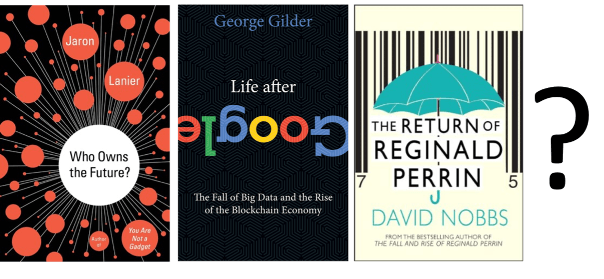 For those that just like the headlines; the books are ‘Who Owns the Future?’ by Jaron Lanier, ‘Life after Google’ by George Gilder and ‘The Return of Reginald Perrin’ by David Nobbs, and the question is ‘Do I need a psychologist?’